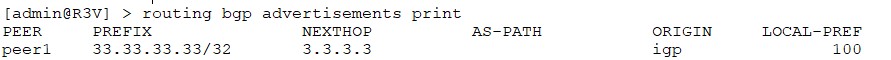- Pastikan network BGP sudah diadvertised routing bgp peer advertisiments print.